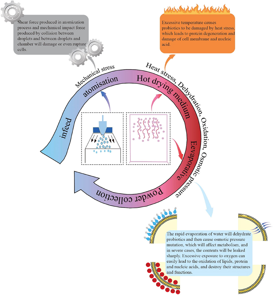 图2. 喷雾干燥过程中益生菌可能遭受的应激损伤