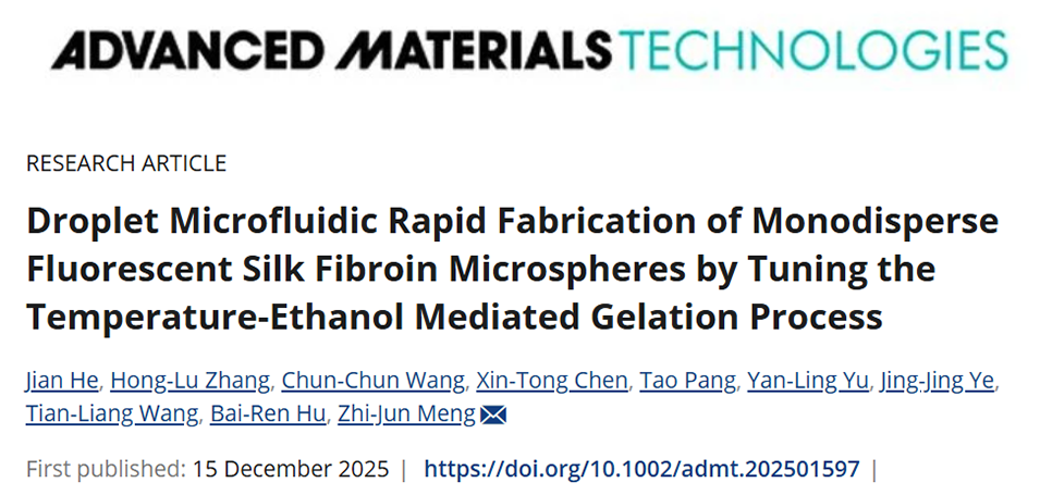 微球因微米级尺寸、高比表面积及可调特性,在药物递送、组织工程等生物医学领域应用广泛,其中兼具生物相容性与单分散性的微球更具应用价值。丝素蛋白源自天然蚕茧,具备优异的生物相容性、生物降解性及低免疫原性,是构建功能生物材料的理想单元。目前,丝素蛋白微球的制备方法,如静电喷雾、乳液扩散等普遍面临单分散性控制难、制备周期长、或依赖化学交联剂/引发剂等问题,限制了其应用潜力。