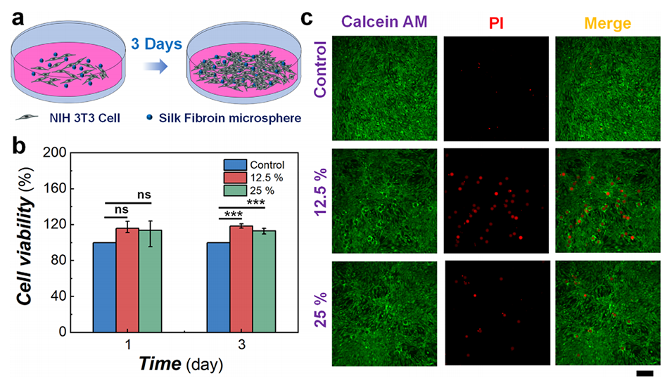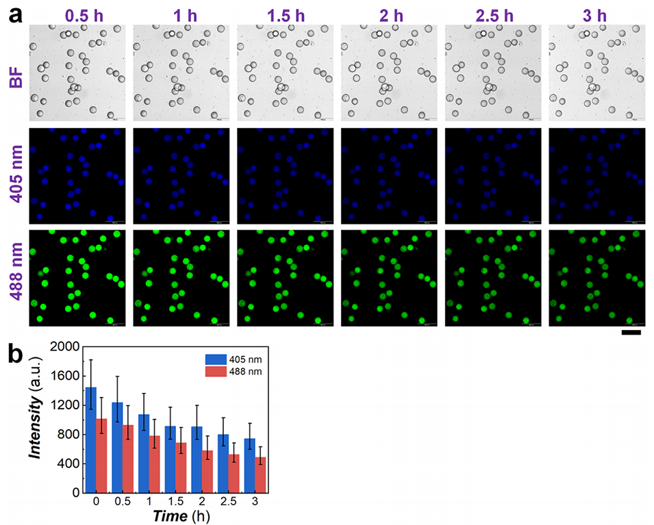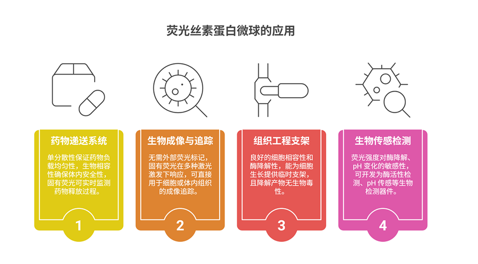 5、基于这一发现,无需借助外部荧光探针,即可实现微球酶降解过程的可视化实时监测,为深入研究丝素蛋白的聚集结构奠定了基础。此外,该新型微球的生物相容性已得到证实,为其生物医学相关应用奠定基础。