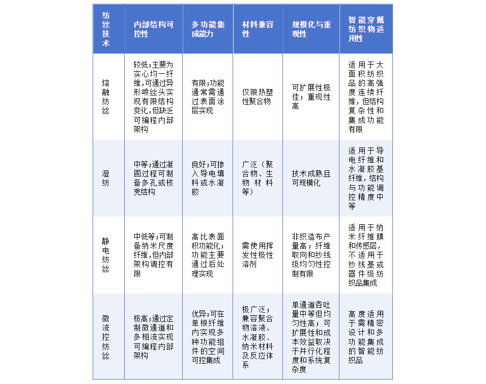 2、重点聚焦微流控纺丝导电复合纤维的结构设计、制备策略及核心性能(如导电性、机械柔韧性和多功能集成能力)—— 这类纤维是智能纺织品的关键组成部分。