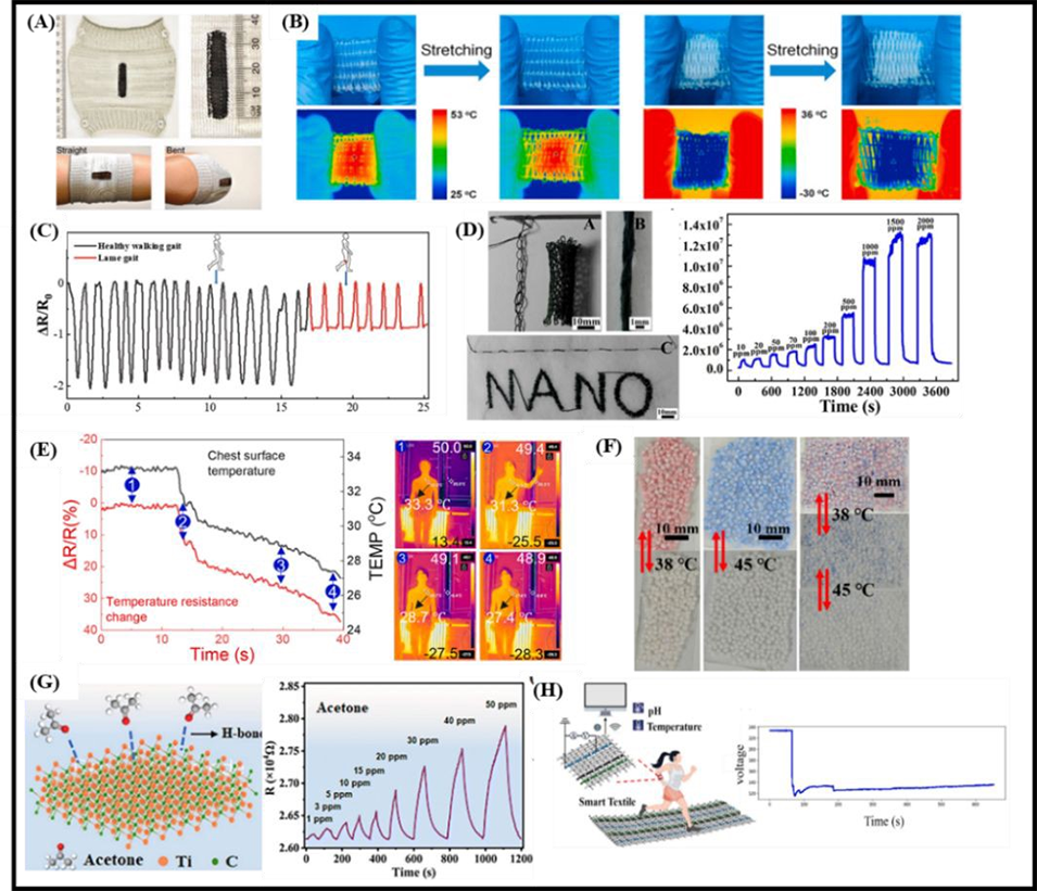 3、此外,还分析了这些功能纤维在智能穿戴纺织品中的应用场景,尤其是传感领域(如应变传感、气体传感、温度传感及多模态传感)、电化学储能领域和智能热管理领域,并探讨了纤维与织物的集成策略及“硬件-软件”一体化穿戴系统的构建。