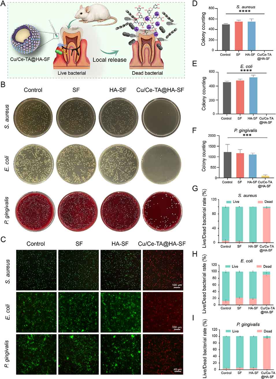 图3. Cu/Ce-TA@HA-SF微球的抗菌性能