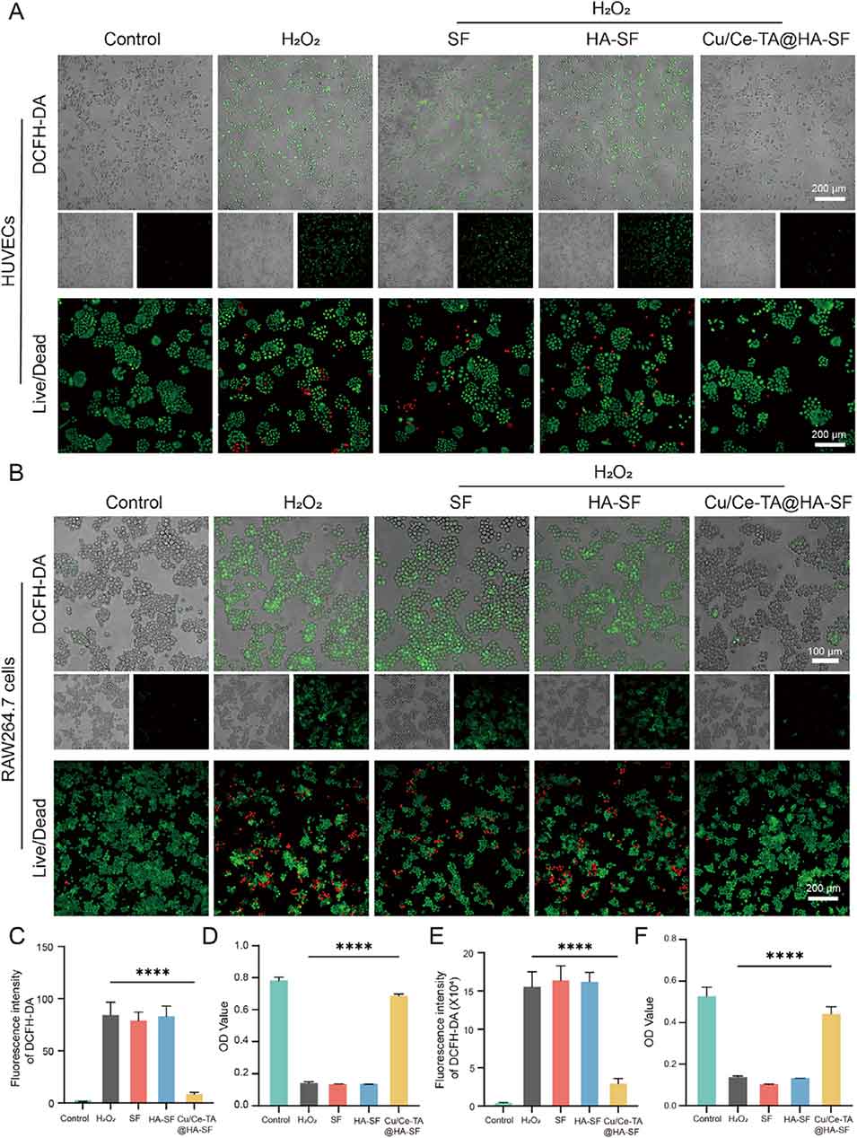 图7. Cu/Ce-TA@HA-SF在氧化应激条件下抑制细胞焦亡的作用