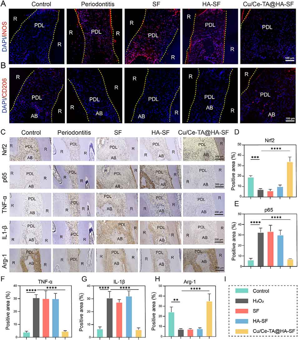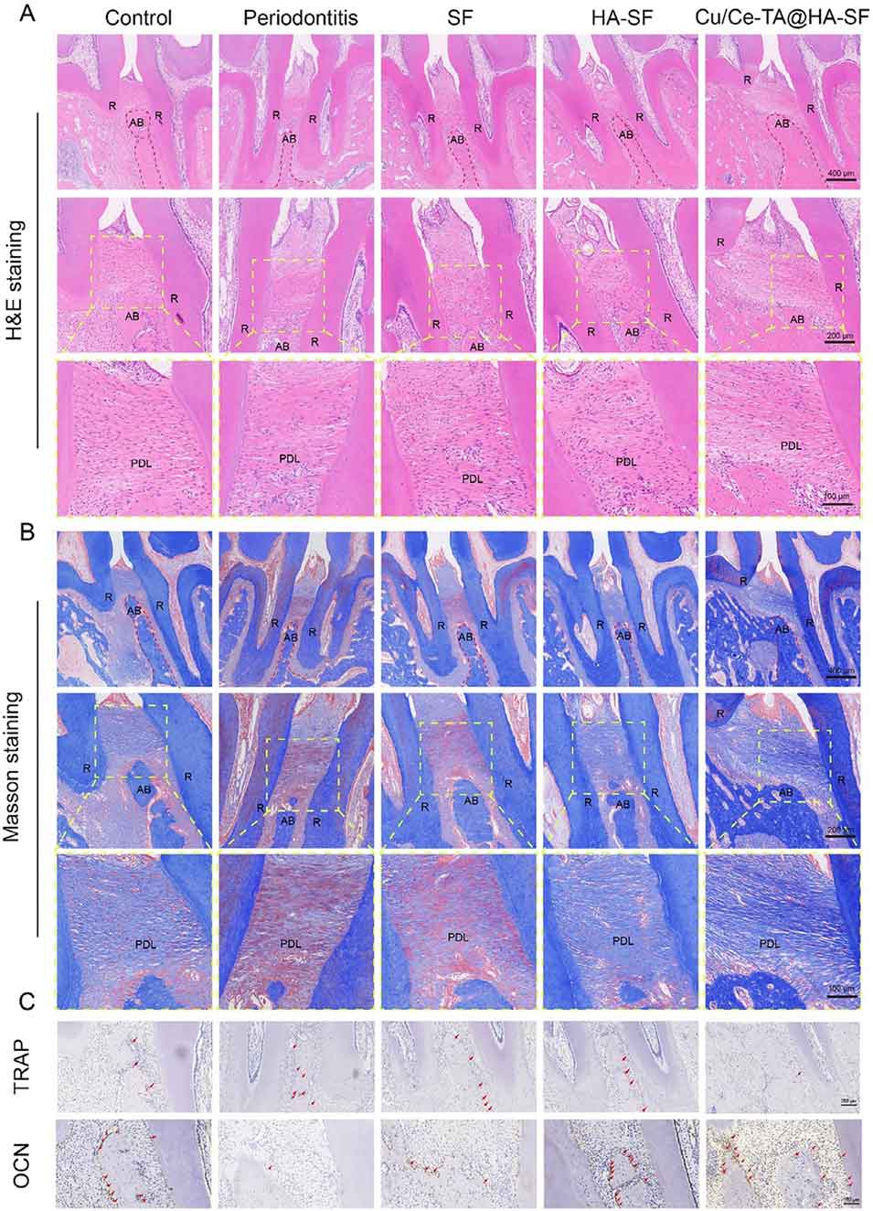 图13. Cu/Ce-TA@HA-SF微球对大鼠牙周炎模型的抗炎活性