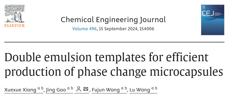 东华大学纺织学院高晶教授团队提出一种基于双乳液模板的相变微胶囊高效制备方法,通过引入壳单体作为不互溶第三相构建热力学稳定的核壳型双乳液,经UV固化成功制备出以HDDA为壳、正十八烷、硬脂酸甲酯等不同相变温区有机材料为芯的相变微胶囊。该微胶囊封装效率超99.7%,具备优异的热稳定性和循环耐久性,在调温流体、智能织物等热管理领域展现出广阔应用前景。相关研究以“Double emulsion templates for efficient production of phase change microcapsules”为题目,发表在期刊《Chemical Engineering Journal》上。