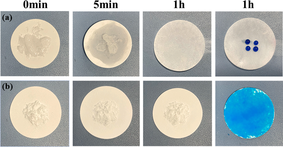 图11 C₁₈(a)及正十八烷微胶囊(b)的高温泄漏测试图(注:测试条件为 100℃下放置1小时)