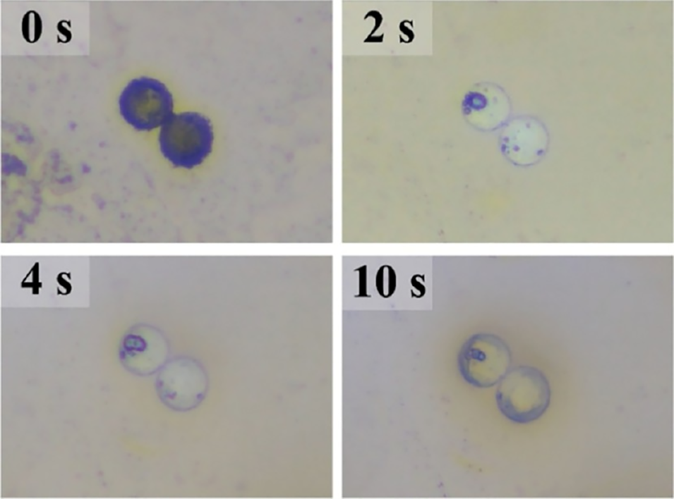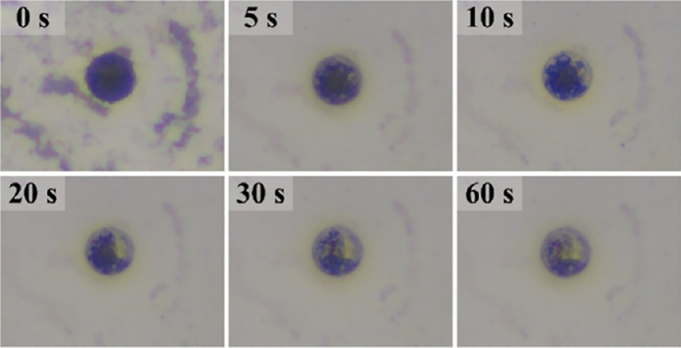 图10 微胶囊在重质油中溶解的光学显微镜图像