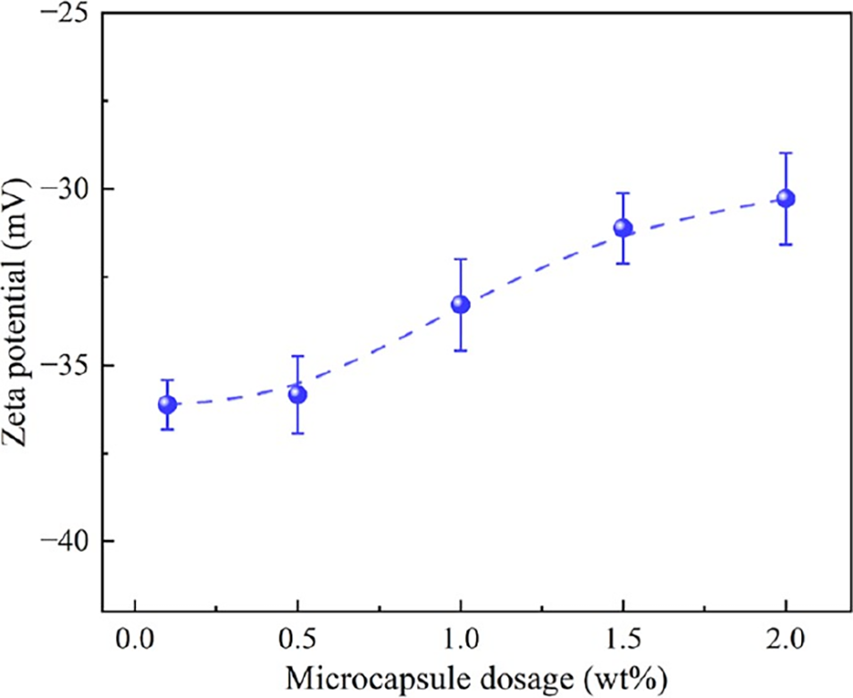 图14 不同用量下微胶囊分散液的 Zeta 电位