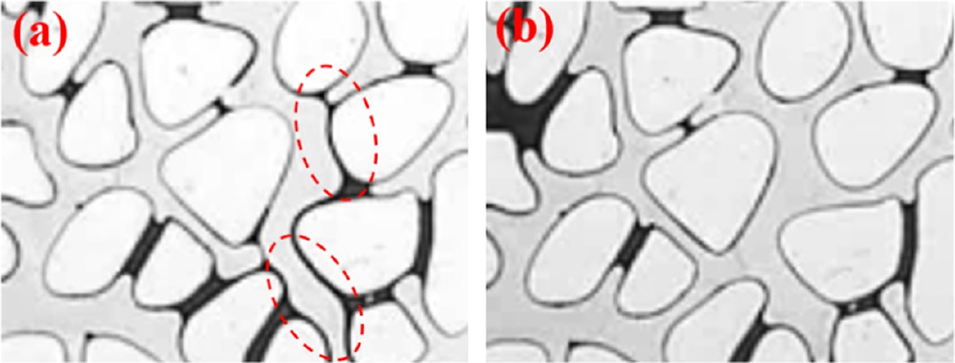 图23 微胶囊驱不同时间的局部放大图:(a)30 分钟;(b)90 分钟