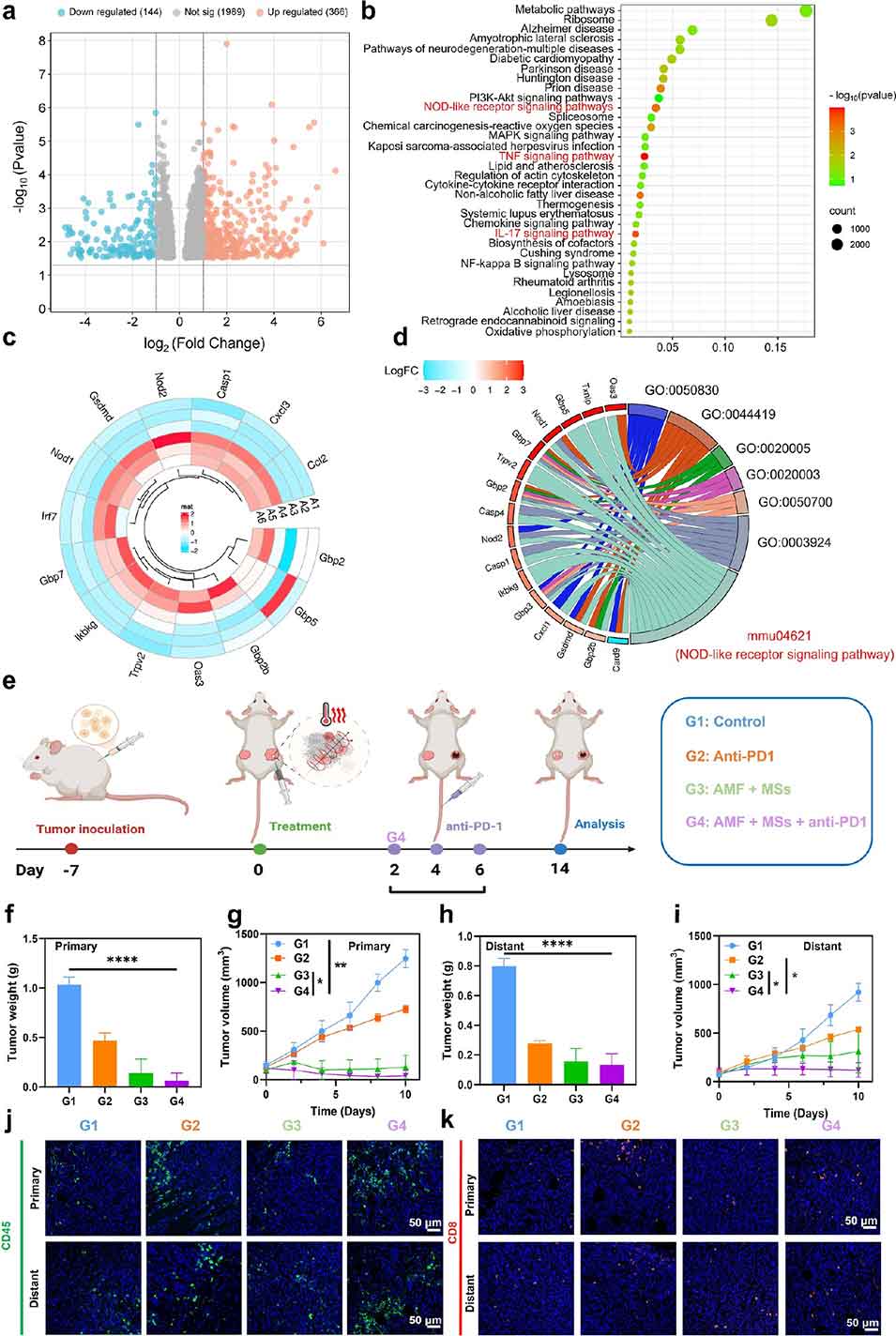 图6. 转录组测序(RNA sequencing)与磁-金属-免疫治疗的关联分析。