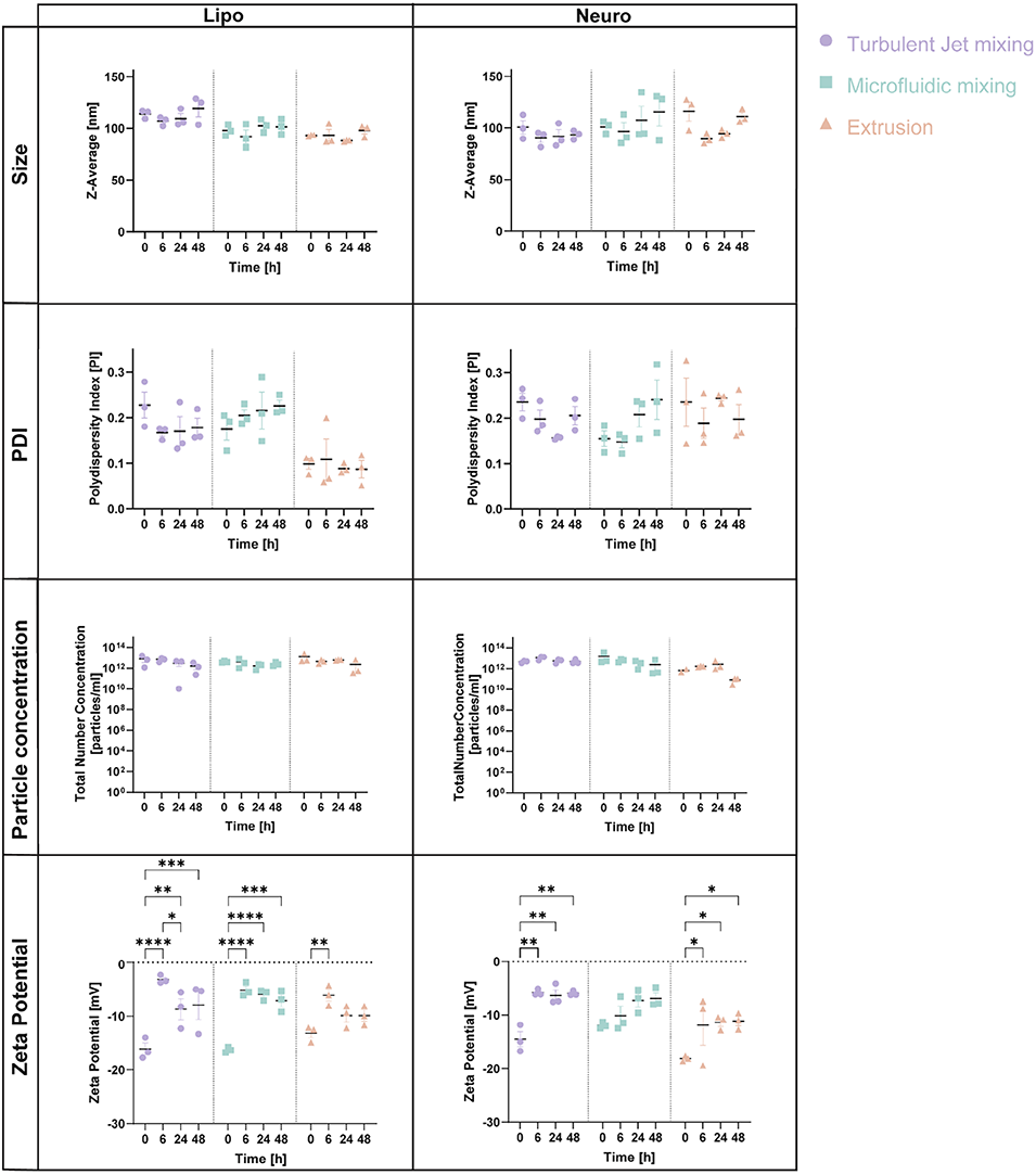 1、该研究聚焦仿生纳米颗粒(BNPs)的制备方法优化,以神经元来源的BNPs为模型,系统对比了湍流射流混合、微流控混合和挤出三种制备方法的性能。