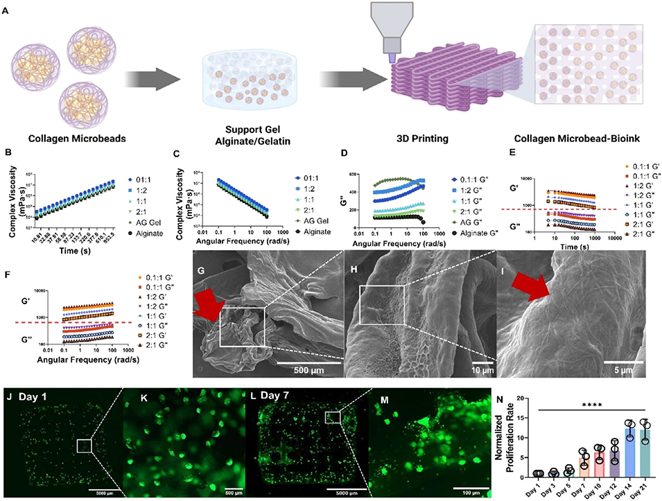 图4 用于3D生物打印的胶原蛋白微珠整合生物墨水的流变学调控与生物相容性
