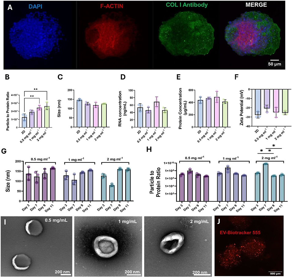 4、该技术整合了可调节性、高吞吐量和功能扩展性,为组织建模、药物测试及治疗性EV生物制造等领域提供了多功能平台,但目前仍局限于实验室规模,需优化以符合GMP标准;未来需开展与其他3D培养系统的对比研究,并探索其体内应用潜力。