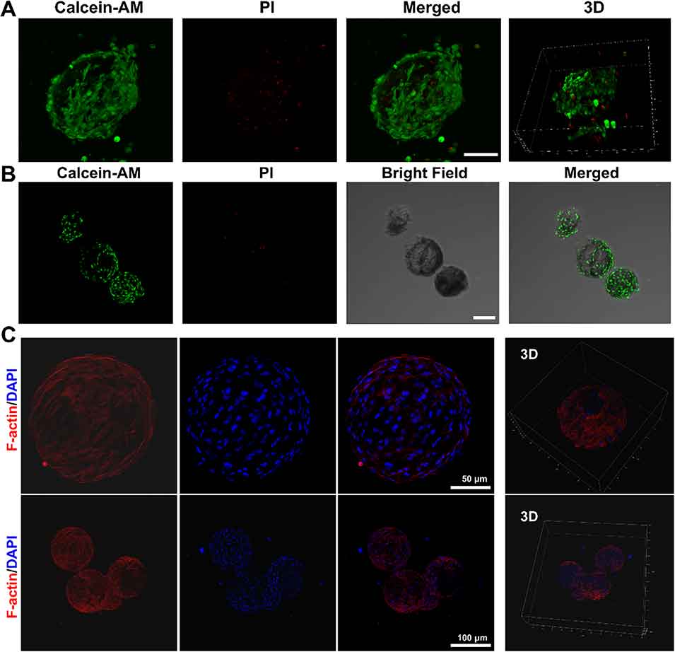 图6 冻干与非冻干GLPM/Dsp@ChSMA水凝胶微球的软骨细胞活性及干细胞负载能力评估