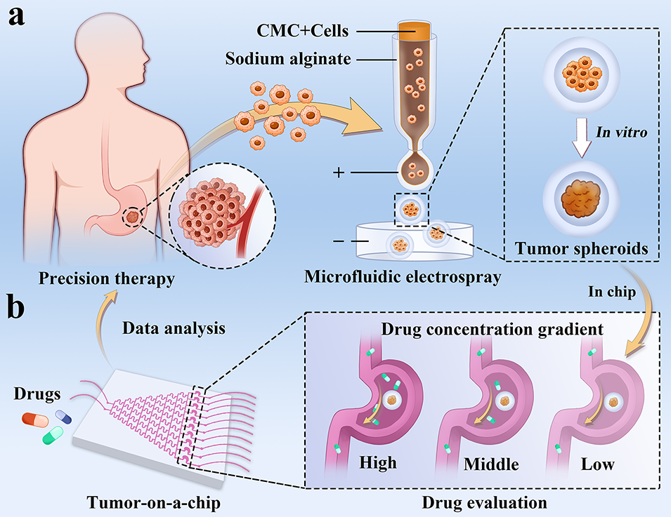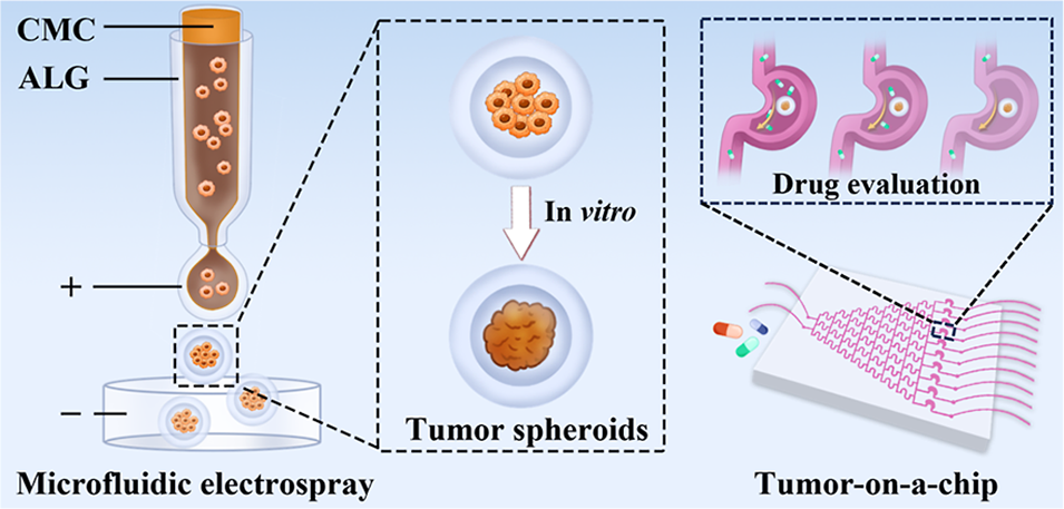 1、该研究提出了一种创新的基于微胶囊的器官芯片平台,用于胃癌个性化药物筛选。研究采用微流控电喷雾技术,将人原代胃癌细胞与羧甲基纤维素混合,封装在海藻酸盐核壳微胶囊中,使肿瘤细胞自发形成类球体并快速增殖,且这些肿瘤类球体具备天然肿瘤的多种特征和异质性。