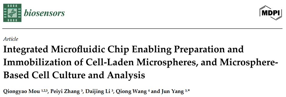 鉴于此,重庆大学生物工程学院杨军研究员团队开发了一款集成化微流控芯片,解决了传统载细胞微球制备与培养分离的技术缺陷,实现了从微球制备到单细胞原位培养分析的一体化操作。相关研究以“Integrated Microfluidic Chip Enabling Preparation and Immobilization of Cell-Laden Microspheres, and Microsphere-Based Cell Culture and Analysis”为题,发表在期刊《Biosensors》上。