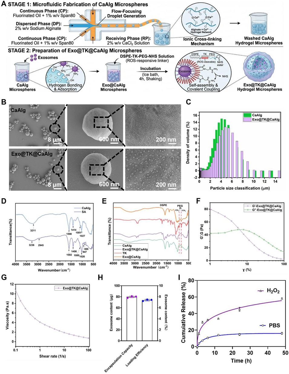 图2. CaAlg和Exo@TK@CaAlg水凝胶微球的制备与表征