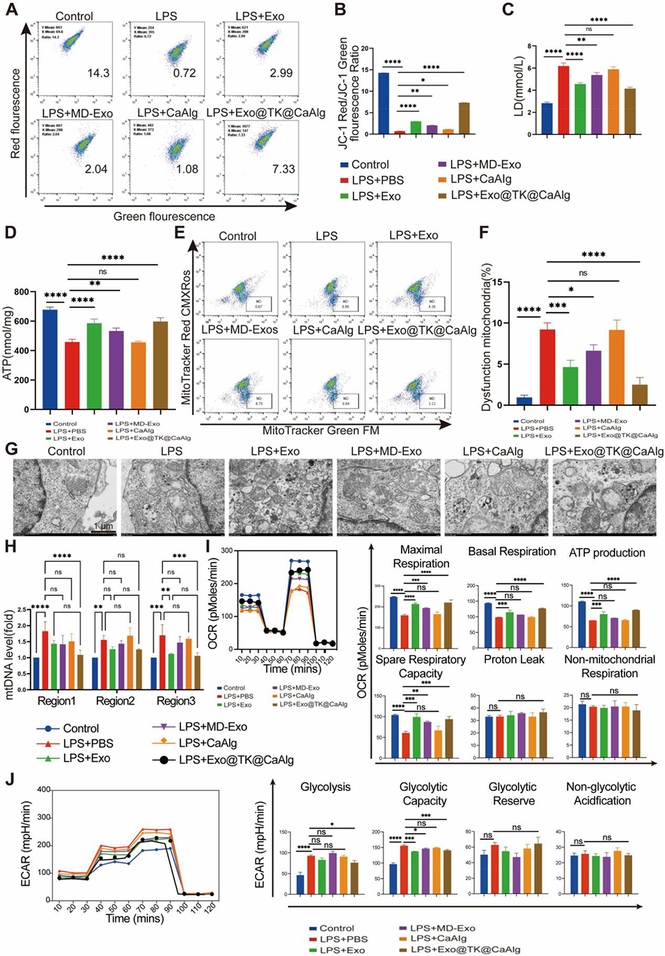 图4. Exo@TK@CaAlg水凝胶微球恢复小鼠肺泡巨噬细胞的线粒体功能