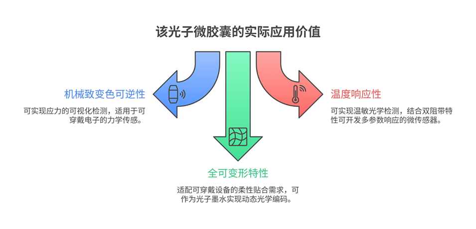 1、该研究以微流控核壳双乳液为模板,制备出全可变形双阻带光子微胶囊,解决了现有光子微胶囊变形性和物理刺激响应性有限的问题,为微传感器、应力可视化和自适应可穿戴设备提供了可规模化的制备方法。