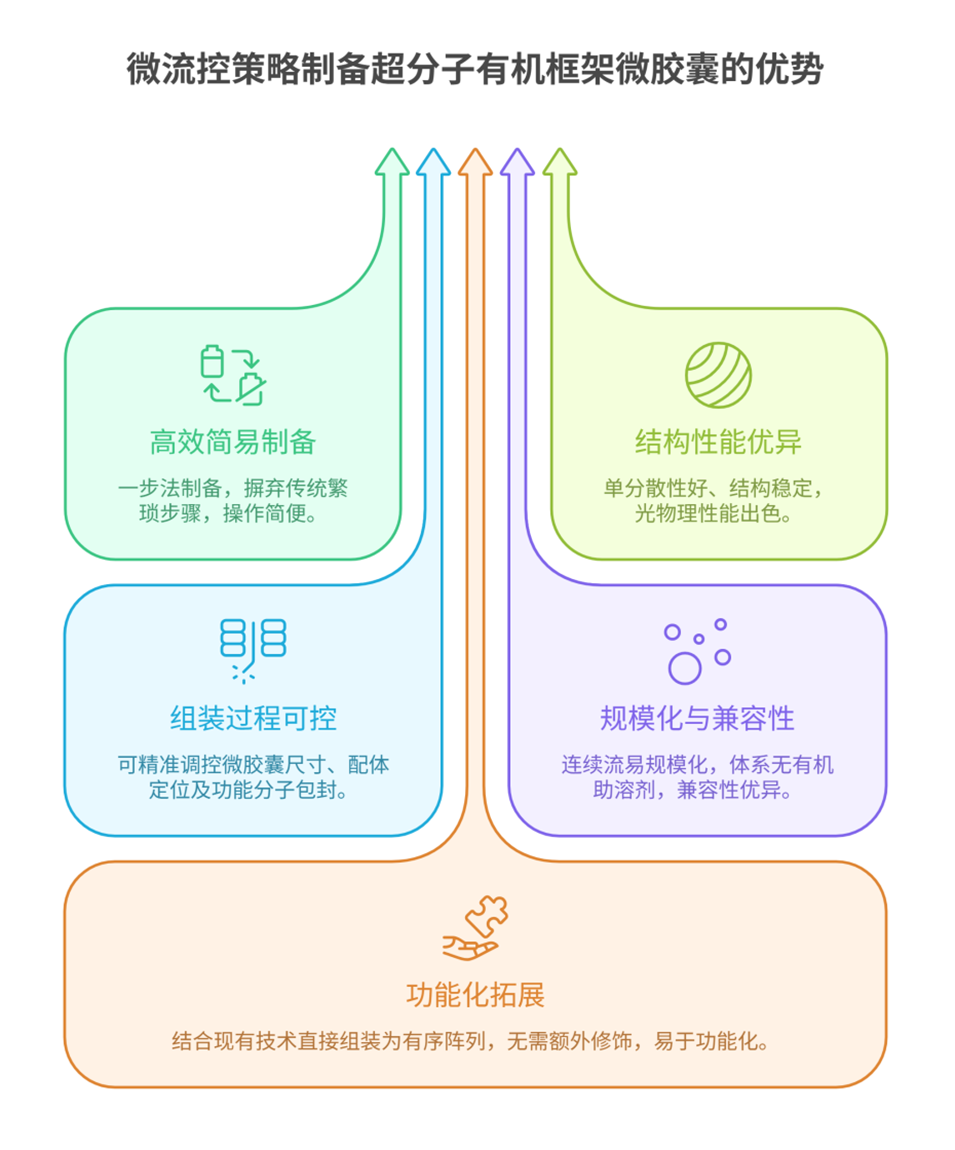 5、该研究建立了界面导向的SOF组装方法,融合超分子化学、微流控技术与光捕获功能,为限域光子材料和多功能微胶囊体系的发展开辟了新途径,在光子器件、光学信息存储、能量转移材料等领域具有广阔应用前景。