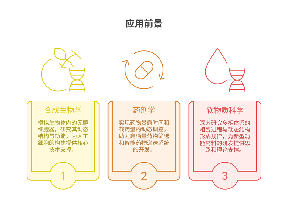 ✅ 多功能拓展,既可精准调控液滴参数,又能实现可逆亚区室、腔室间通讯,适配多类研究需求。