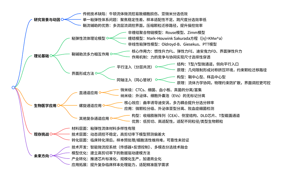 5、最后,提出未来研究方向,以期深化对粘弹性流体界面效应的理解与利用,推动微流控技术在高精度生物医学领域的发展。