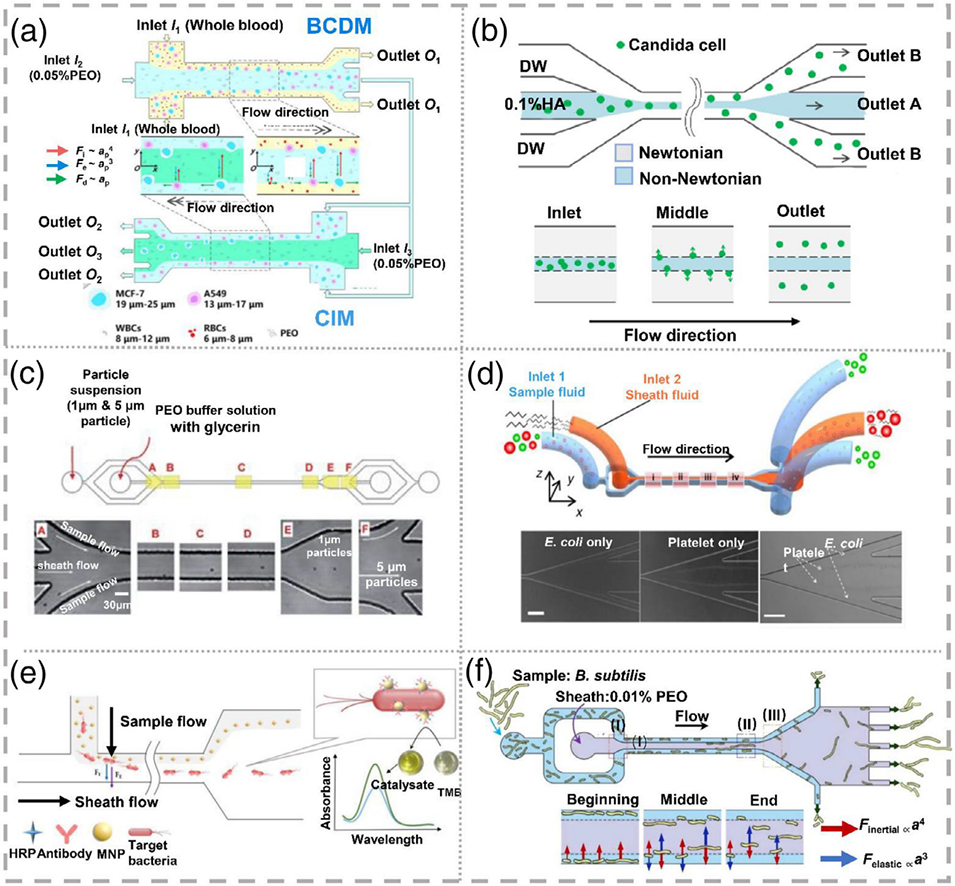4、根据直通道、螺旋通道及不规则微通道设计,对粘弹性-惯性鞘流辅助系统进行了分类,并概述了其生物医学应用。