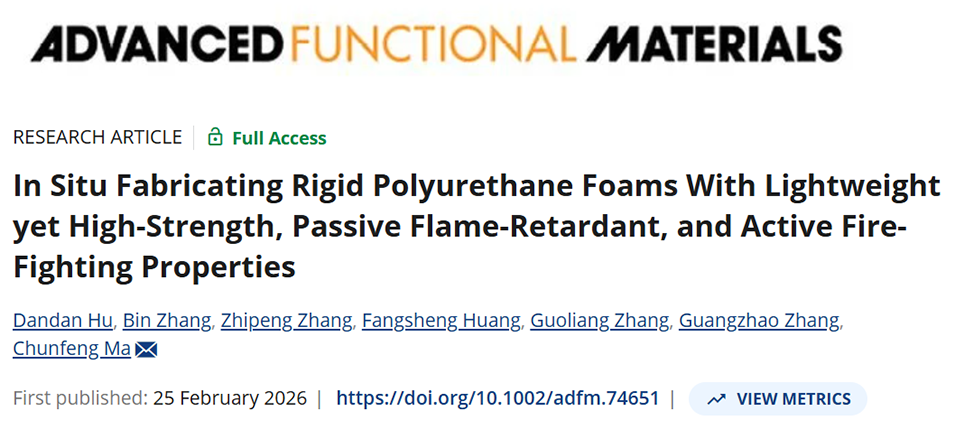 近期,华南理工大学马春风教授团队成功研发出一种集轻质高强、主动灭火与被动阻燃于一体的硬质聚氨酯泡沫复合材料。该材料通过微流控技术将灭火剂封装于微胶囊内,并与含磷阻燃剂协同作用,在火灾发生时既能快速释放灭火剂主动抑制火源,又能形成致密炭层阻隔火焰蔓延,其压缩和弯曲强度分别提升153.2%和294.5%。相关研究以“In Situ Fabricating Rigid Polyurethane Foams With Lightweight yet High‐Strength, Passive Flame‐Retardant, and Active Fire‐Fighting Properties”为题目,发表于期刊《Advanced Functional Materials》。
