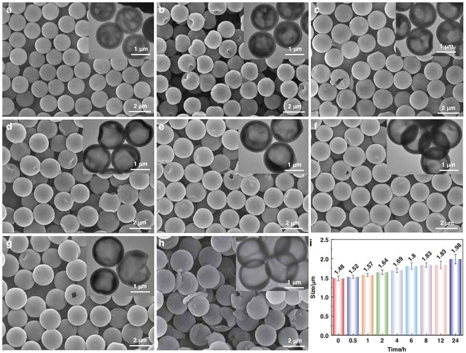 图2中空聚苯乙烯微球在水-乙醇混合体系(水:乙醇,体积比 = 1:5)中的形貌演化行为