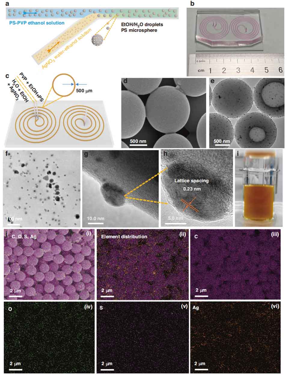 图4在螺旋微反应器中通过连续流法制备银负载聚苯乙烯微球