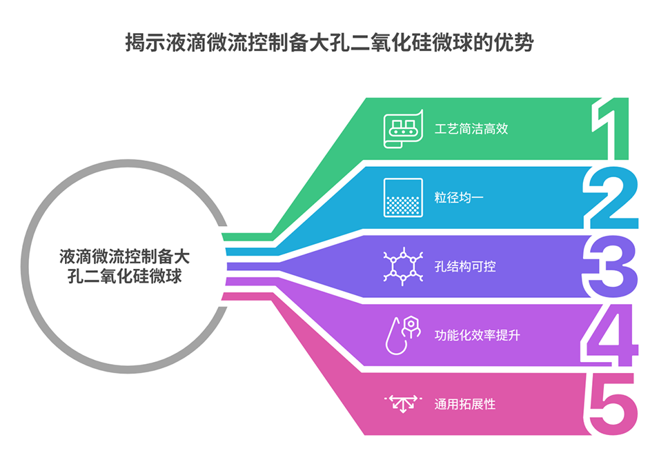 4、该研究证实,液滴微流控精密制备的大孔二氧化硅微球作为手性固定相载体优势显著,其对颗粒形貌和孔结构的精准调控能力,为制备各类高性能手性色谱固定相提供了通用策略,有望推动手性分离技术的发展。
