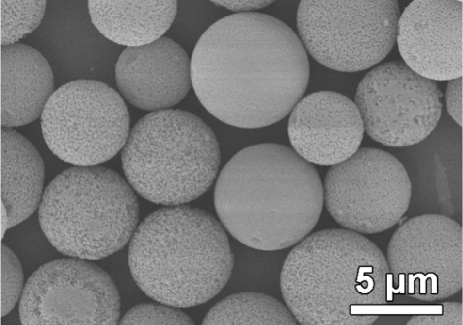 图1 由多分散介孔二氧化硅微球经扩孔工艺制备的大孔二氧化硅微球。