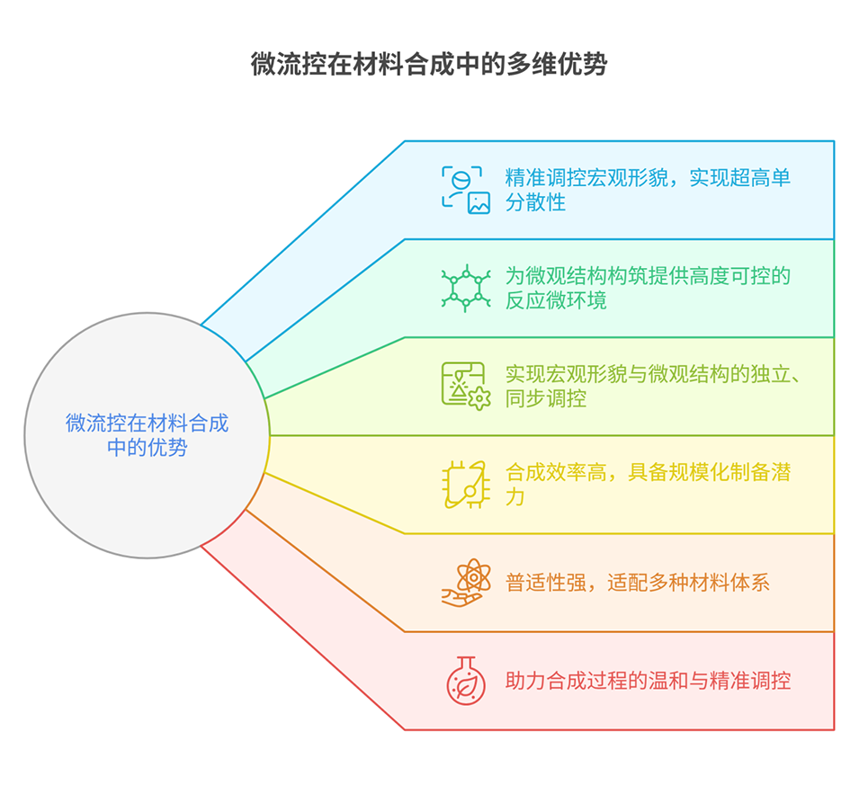 ④ 高通量制备,该体系下微流控液滴生成通量达240,000 Hz /芯片,每小时可制备约10⁹个微球,解决了传统微流控合成产率低的问题,具备实际应用潜力。