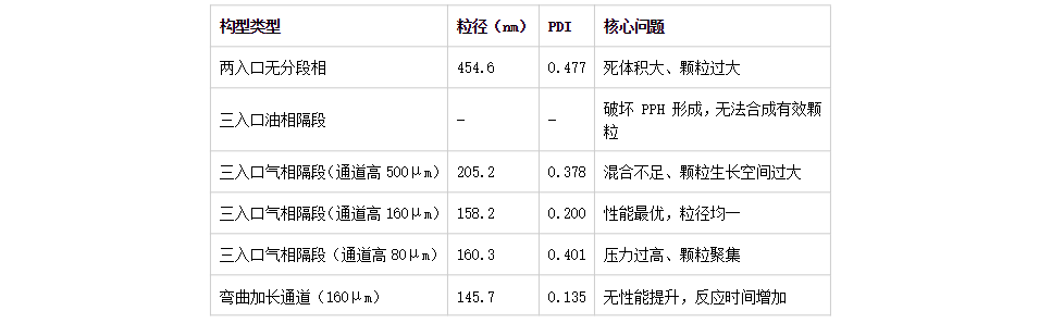 此外,优化得到160μm的通道高度,兼顾了混合效率和颗粒生长控制,实现了颗粒的均一合成。