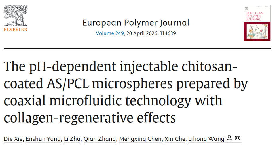 该研究将系统表征该微球的理化性质,评价其体外生物相容性,并通过体内实验验证其促胶原再生与抗炎效果,旨在为组织修复与再生医学领域提供一种更安全、更长效的面部抗衰老方案。相关工作以“The pH-dependent injectable chitosan-coated AS/PCL microspheres prepared by coaxial microfluidic technology with collagen-regenerative effects”为题目,发表在期刊《European Polymer Journal》上。