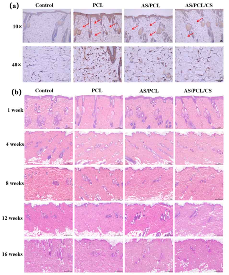 体内实验表明,植入该微球后可显著促进胶原再生,并减轻炎症反应。