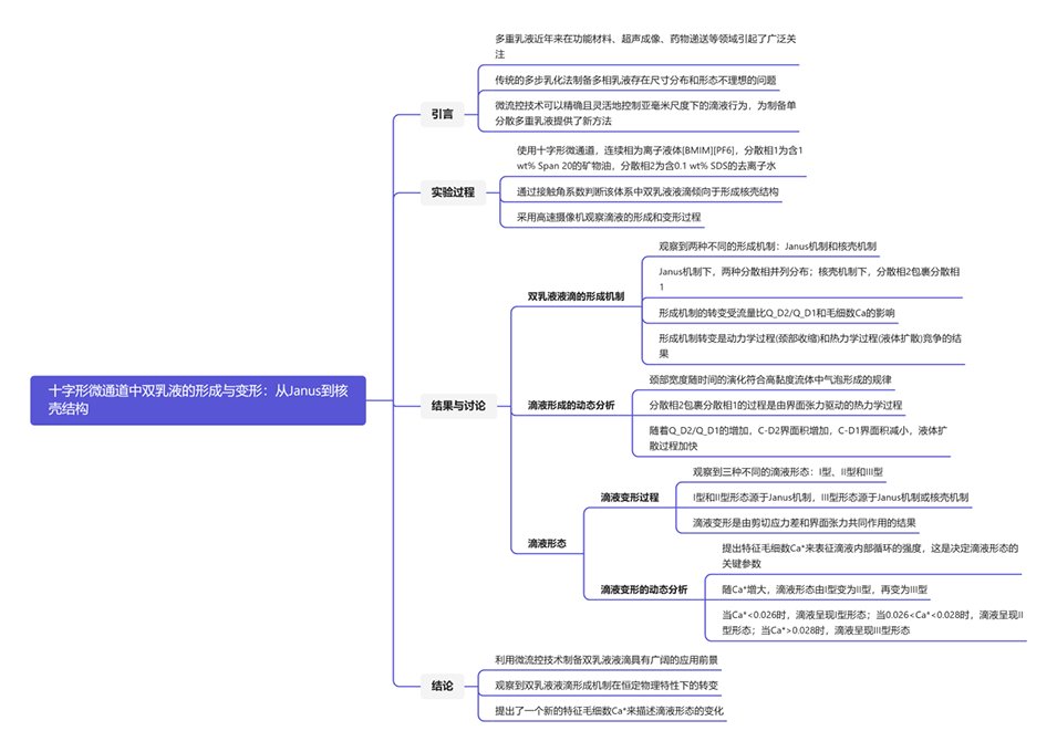 1、微流控技术精确控制双乳液液滴的形成对于制备具有特定功能的微胶囊和微反应器至关重要,这在药物递送系统、化妆品、食品工业等领域具有广泛应用。