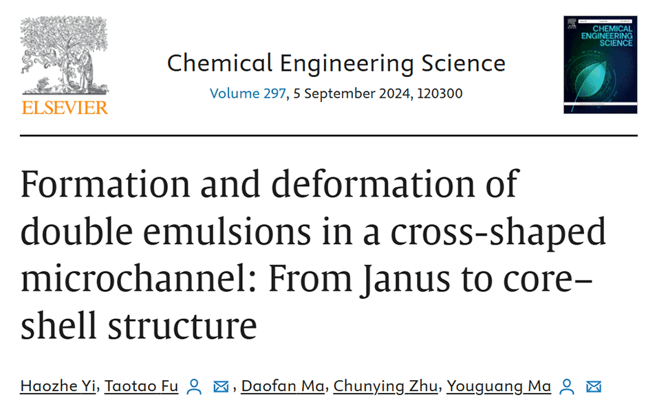 近期,天津大学马友光教授、付涛涛副教授团队研究了十字形微通道中双乳液液滴的形成和变形。在物理特性不变的情况下,观察到了形成机制的转变。相关研究以“Formation and deformation of double emulsions in a cross-shaped microchannel: From Janus to core–shell structure”为题目发表于期刊《Chemical Engineering Science》。