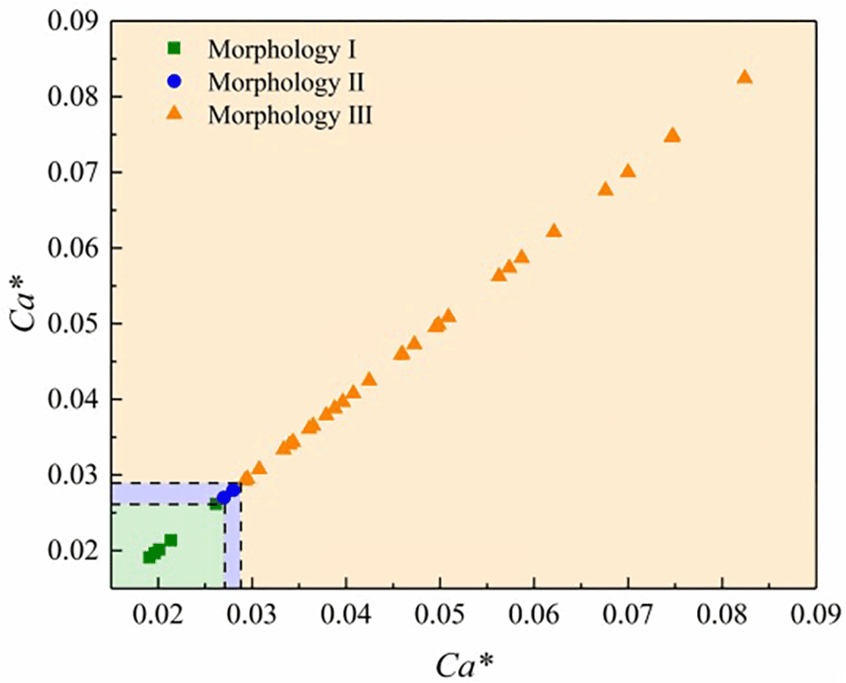 图8.液滴的形态图。横坐标和纵坐标为特征毛细数Ca*。