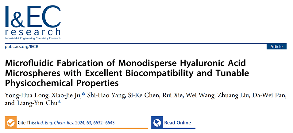 近期,四川大学巨晓洁教授&褚良银教授团队开发了一种基于液滴微流控的简单而高效的方法,用于可控制备具有优异生物相容性和可调理化特性的单分散透明质酸(HA)微球。相关研究以“Microfluidic Fabrication of Monodisperse Hyaluronic Acid Microspheres with Excellent Biocompatibility and Tunable Physicochemical Properties”为题目发表于期刊《Industrial & Engineering Chemistry Research》。