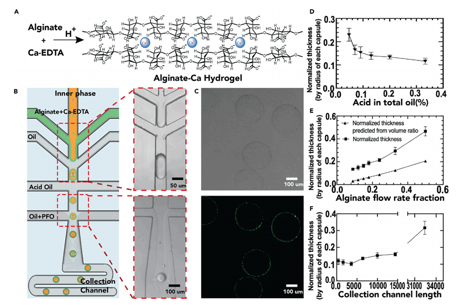 液滴微流控技术通过这些精确的控制手段,实现了对海藻酸盐水凝胶微囊壳层厚度的精确调控,为细胞封装和组织工程提供了强有力的工具。
