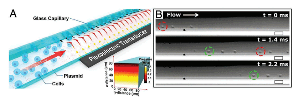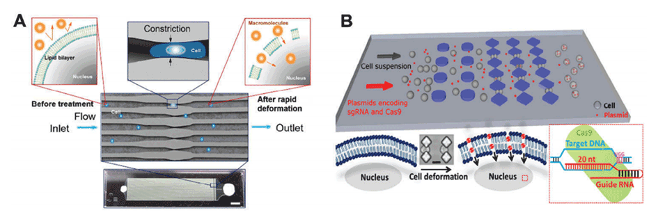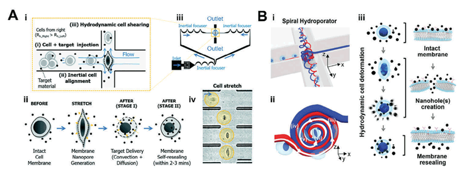 图4.微流体剪切应力诱导的机械细胞膜断裂。