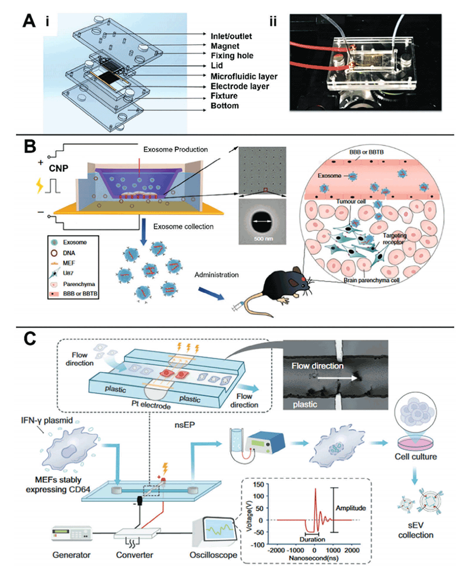 图9.基于微流控电穿孔的细胞衍生EVs药物装载策略。