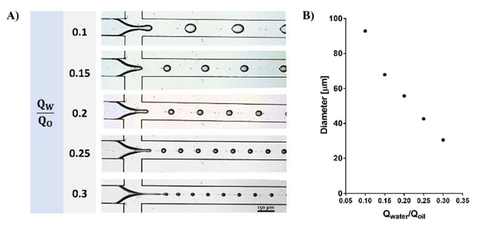 图1.连续相流速对海藻酸盐-RGD液滴尺寸的影响。
