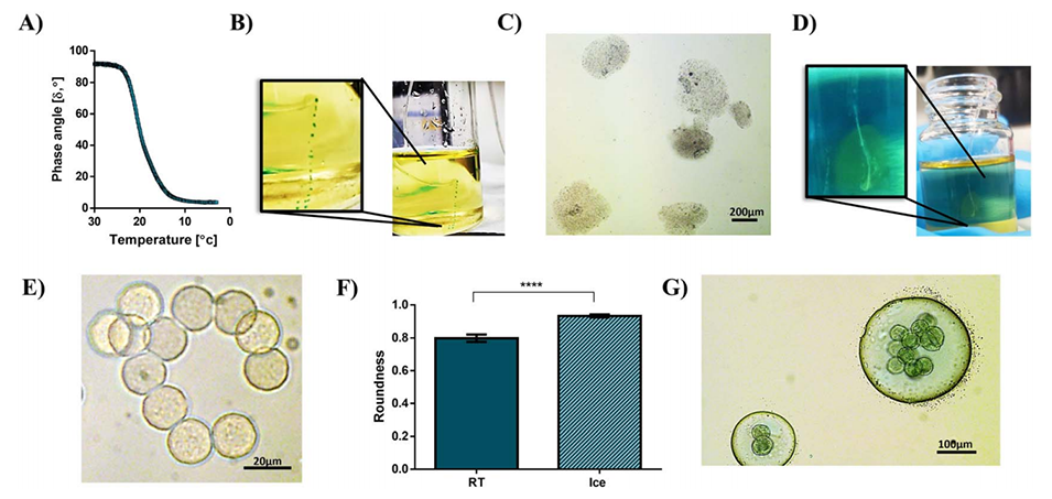 图4.海藻酸盐-RGD-明胶液滴的凝胶化。