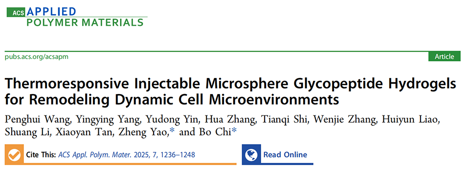 水凝胶微球作为药物递送和细胞培养的关键载体引起了广泛关注。传统微球由于其封闭的表面结构和生物惰性,在再生医学领域的应用受到限制。为此,南京工业大学迟波教授课题组与江苏中烟工业有限责任公司研究团队合作,利用微流控技术成功制备了多孔PLLA聚合物微球,并将其引入与天然ECM高度兼容的糖肽类水凝胶中,成功开发了具有ROS清除和温度响应行为的γ-PGA/HA@ PLLA微球复合水凝胶活性体系。相关研究以“Thermoresponsive Injectable Microsphere Glycopeptide Hydrogels for Remodeling Dynamic Cell Microenvironments”为题目,发表于期刊《ACS Applied Polymer Materials》。