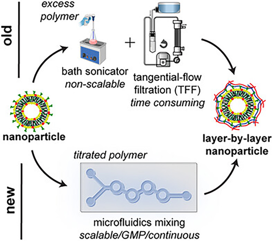1、本研究开发了一种基于微流控(MCF)混合技术的高通量层层组装(LbL)纳米颗粒制备方法。