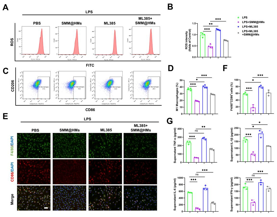 图 6:SMM@HMs 通过激活 Nrf2 清除巨噬细胞内活性氧(ROS)并抑制 M1 型极化
