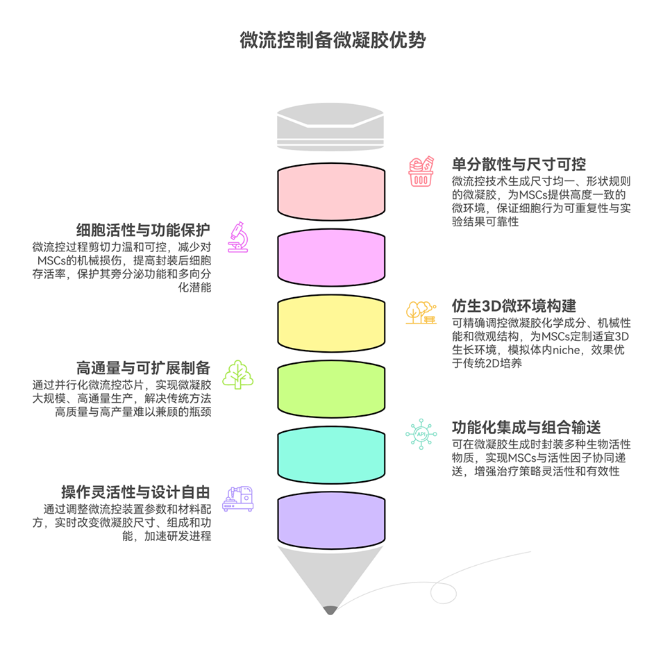 1、本研究开发了一种基于微流控技术的载细胞微凝胶构建方法,用于制备人工肝脏微组织以治疗急性肝衰竭。