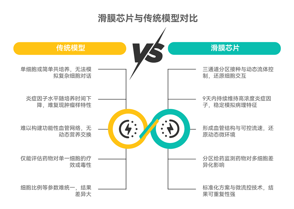1、为构建能精准模拟RA滑膜微环境的体外模型,本研究利用微流控芯片技术,开发了一种包含RA FLSs、M1型巨噬细胞和人脐静脉内皮细胞(HUVECs)的血管化、免疫激活的“滑膜芯片”(SOC)模型。